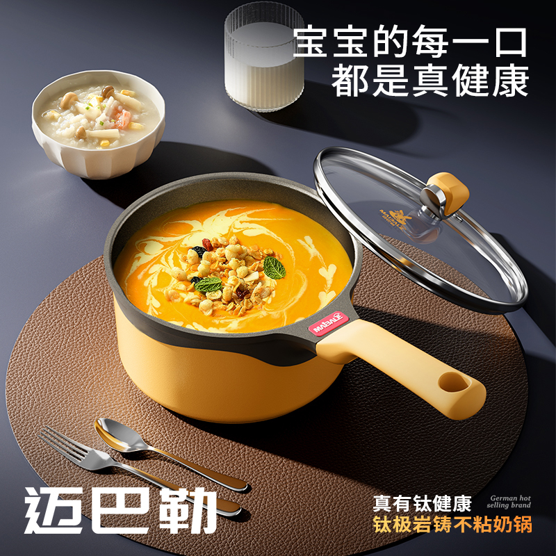 迈巴勒不粘小奶锅宝宝辅食锅婴儿煎煮一体煮汤泡面热奶家用一人食
