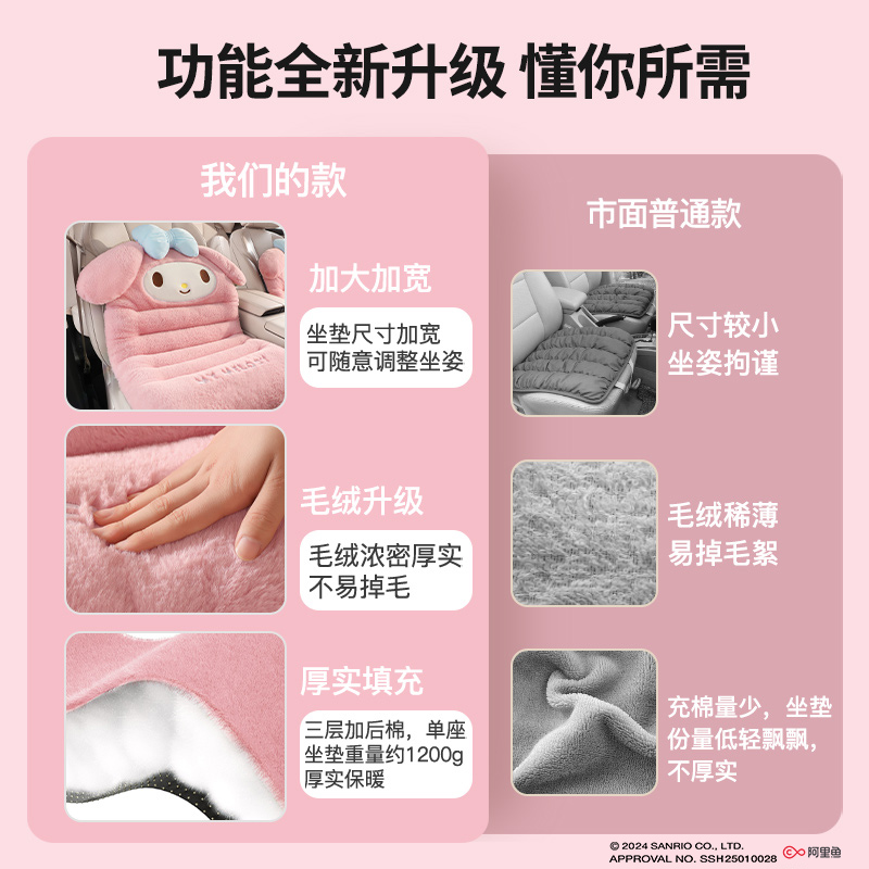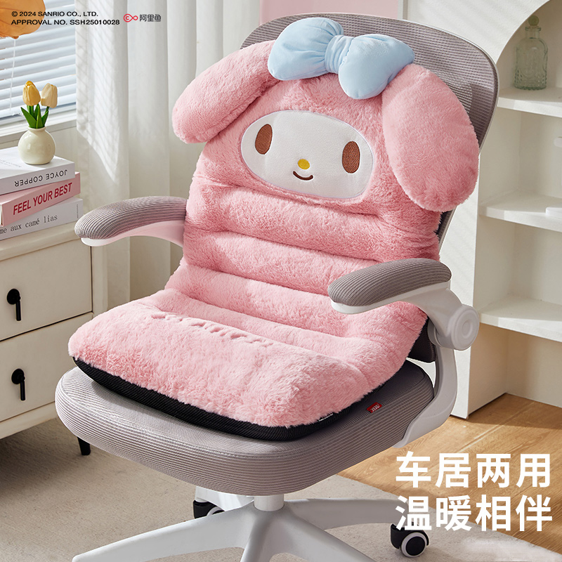 三丽鸥冬季 汽车坐垫卡通可爱美乐蒂保温加毛绒加厚连体腰靠垫座垫