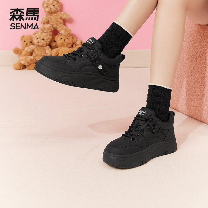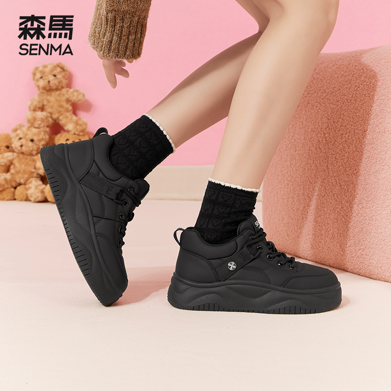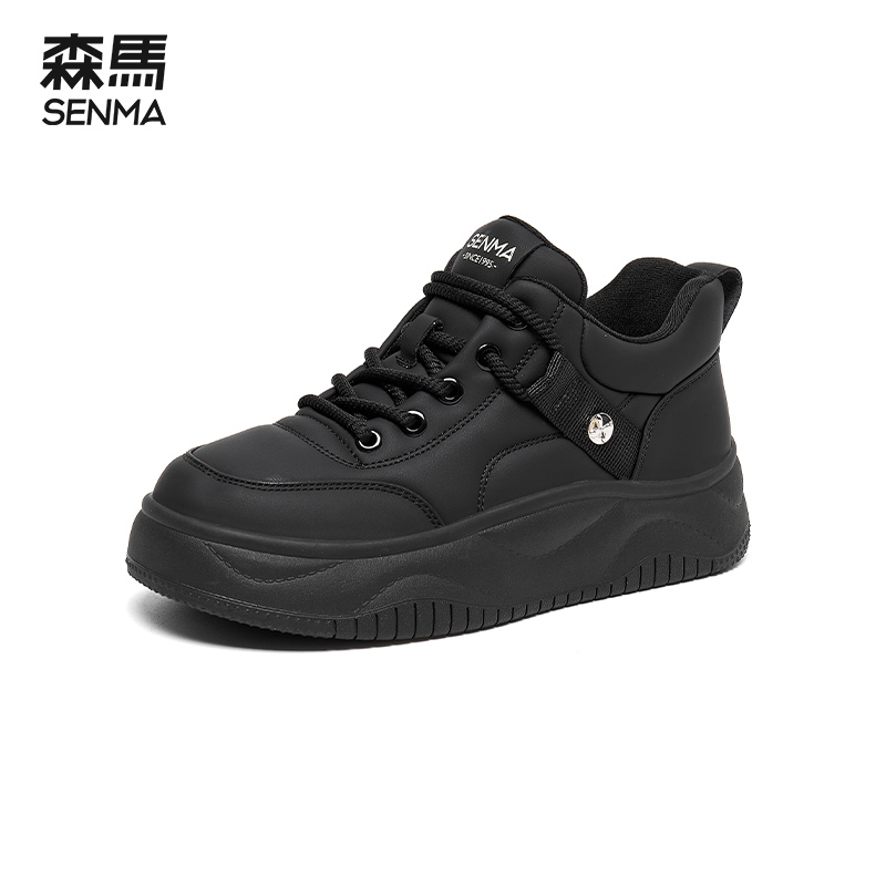 百搭学生厚底增高运动休闲小白鞋 森马黑色板鞋 爆款 秋季 女2025新款