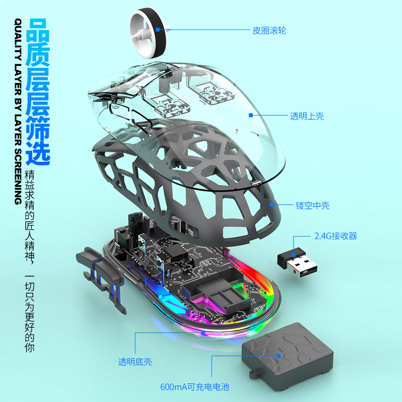 蝰蛇BM560 笔记本电脑通用透明 无线鼠标三模蓝牙有线游戏办公台式