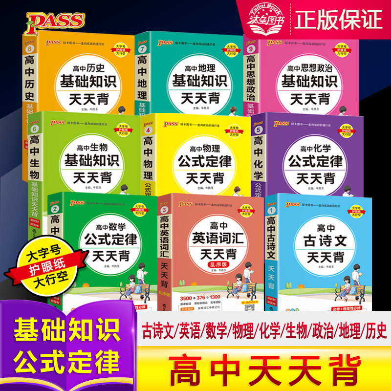 高中天天背pass绿卡数学语文英语词汇化学生物物理思想政治历史地理全套古诗文基础知识手册高考公式 定律口袋书掌中宝