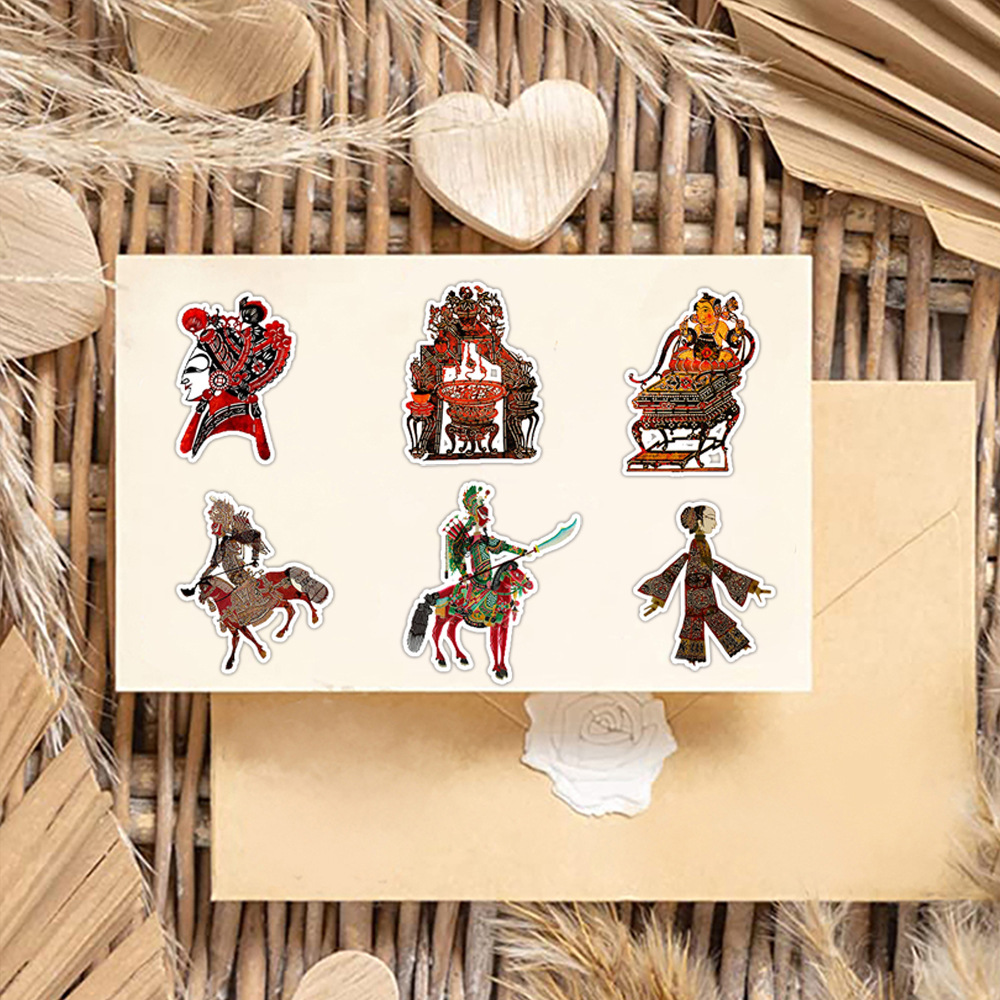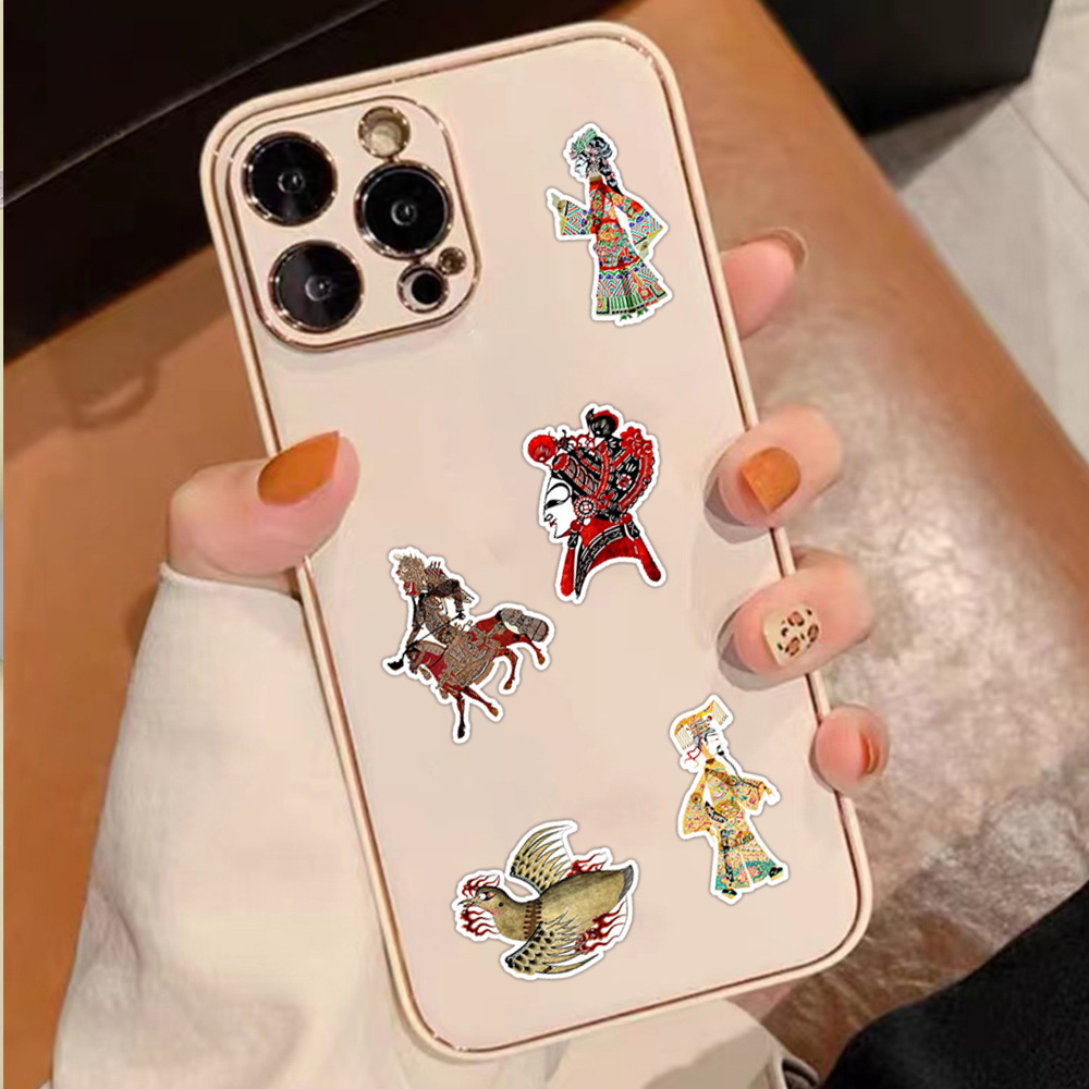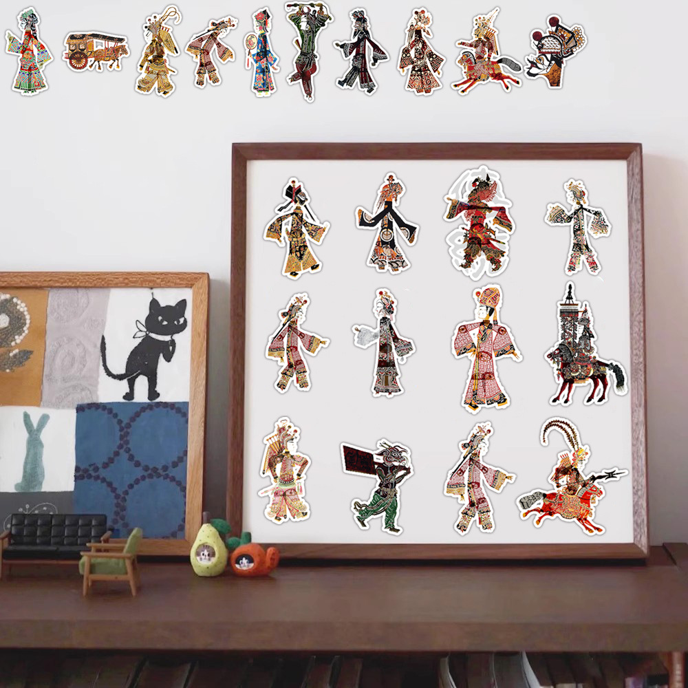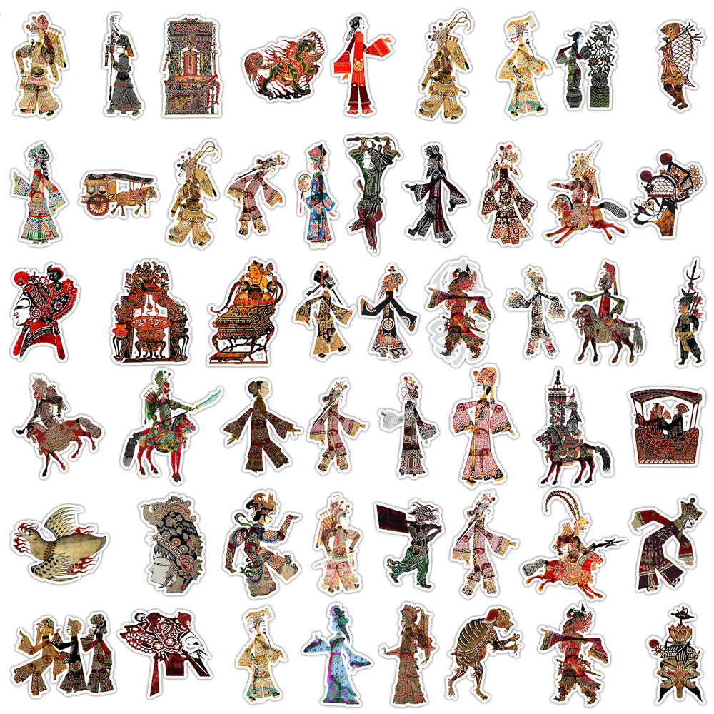 50张复古皮影戏涂鸦贴纸中国风非遗复古戏曲文化民俗贴纸防水文具滑板水杯手机壳防水装 饰DIY手账创意贴画