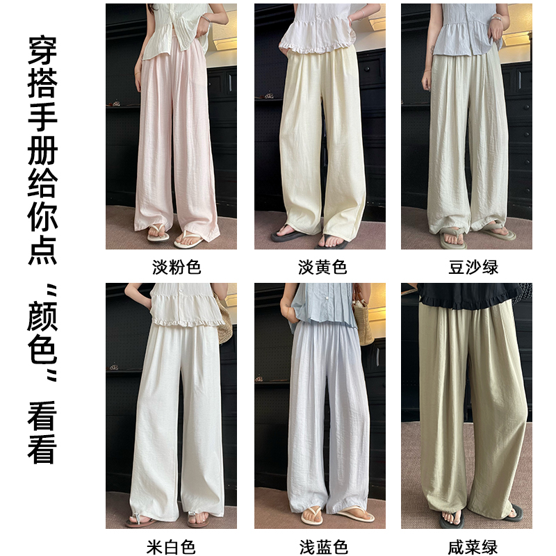 垂感休闲麻料拖地裤 粉色天丝亚麻宽松直筒裤 2025新款 薄款 子 女夏季
