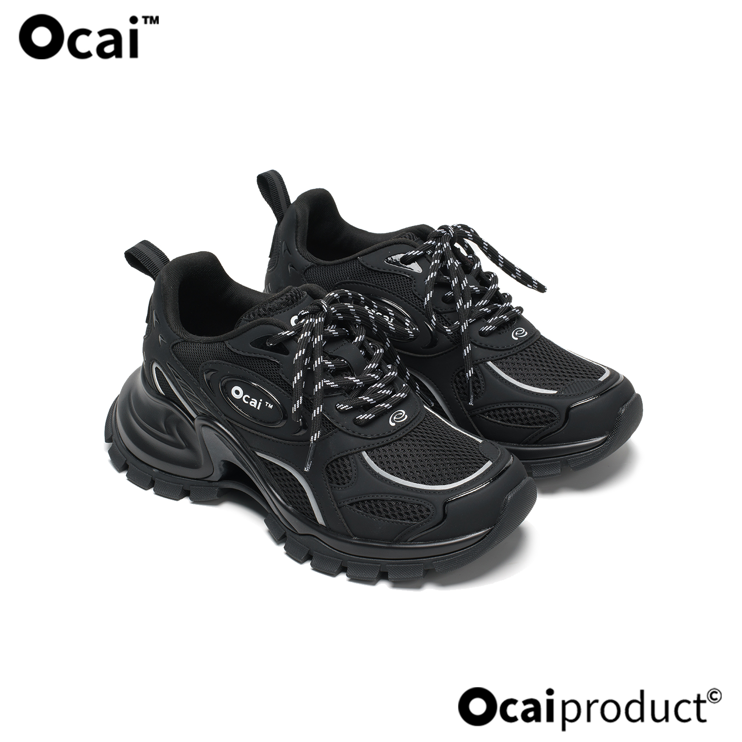 复古撞色厚底增高黑色老爹鞋 black 追光跑鞋 女 曜光黑渊 Ocai