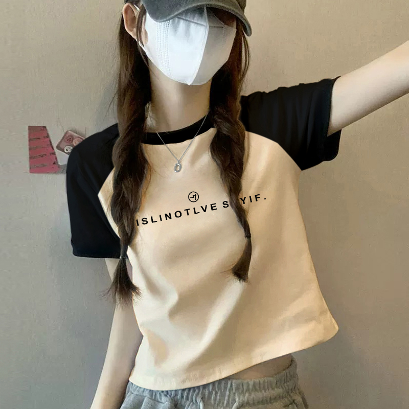 修身 上衣短袖 显瘦2025夏季 短款 t恤女 新款 正肩插肩设计感小众短款
