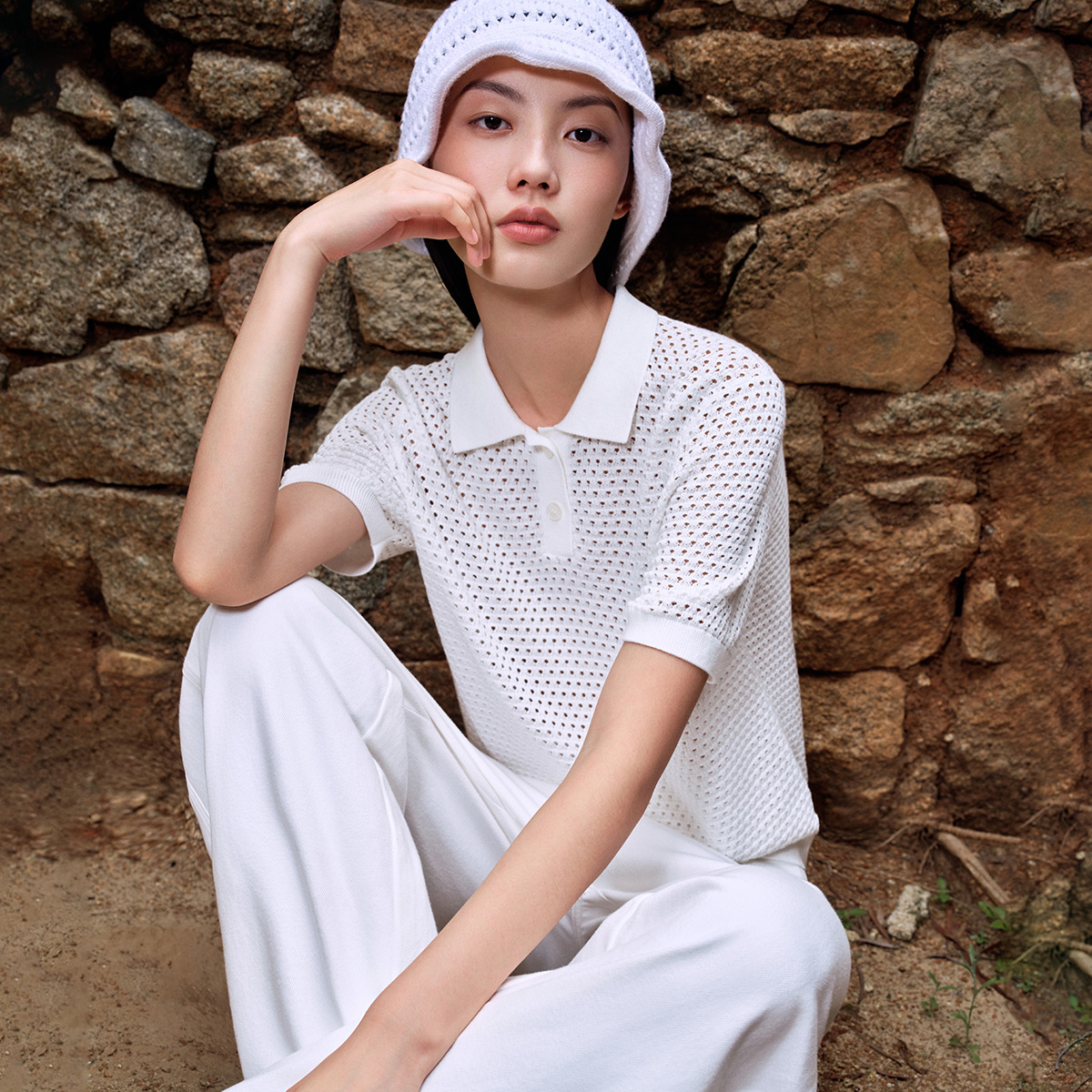 海风 短袖 珊瑚岛 女士春夏镂空针织POLO衫 5189 海岛棉 东黎温柔