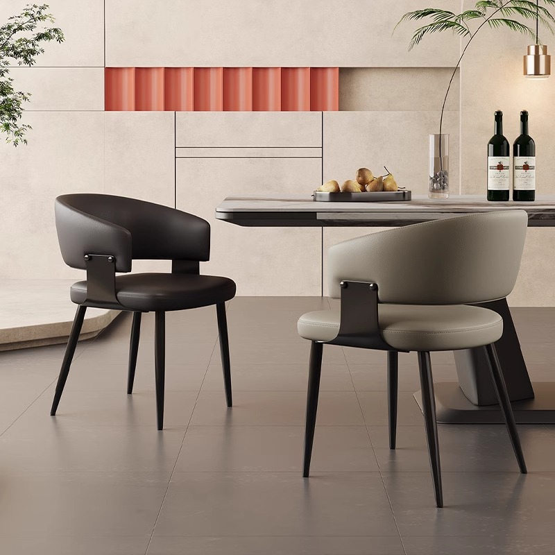 2025餐厅餐椅家用意式 皮椅软包靠背扶手餐桌椅 极简轻奢高级感新款