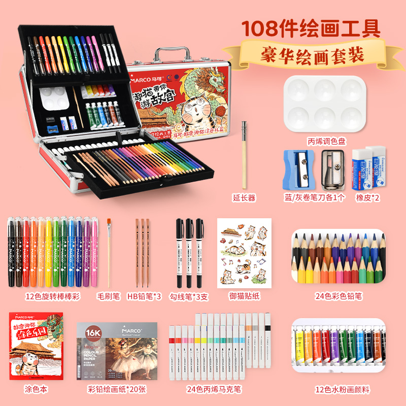 MARCO马可双层故宫御猫画笔套装 礼盒男女孩涂色笔儿童幼儿园可水洗画画小学生绘画全套工具文具生日开学礼物