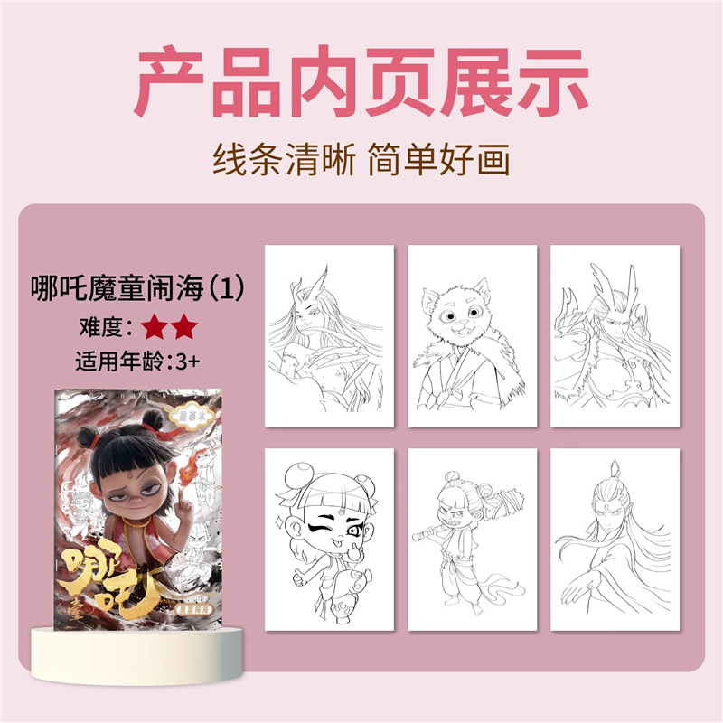 笔手稿描摹儿童动漫卡通本哪咤描绘画画本本本人物控绘画涂色本线