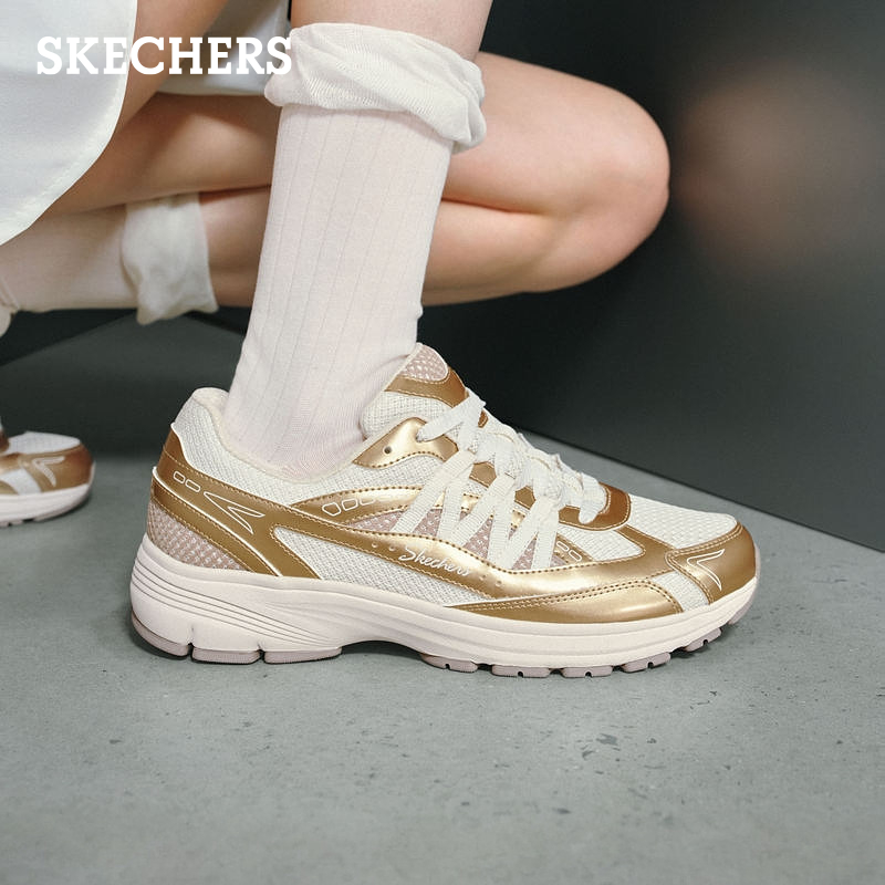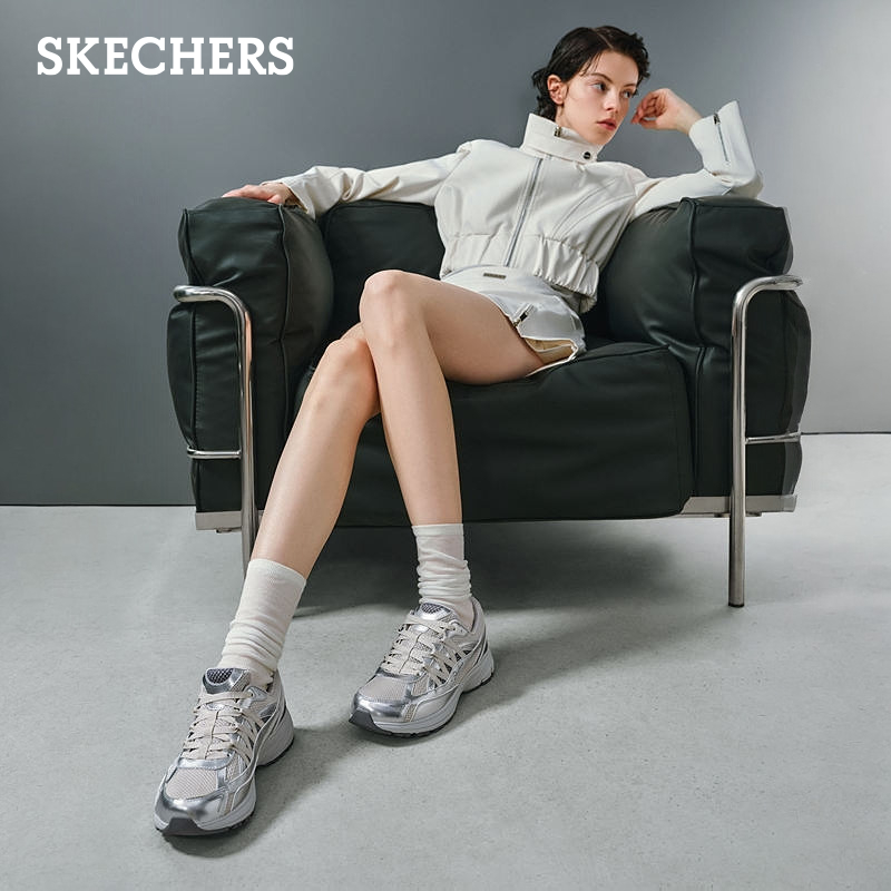 厚底缓震鞋 斯凯奇银灰色运动鞋 百搭老爹鞋 女轻便休闲鞋 2025秋新款