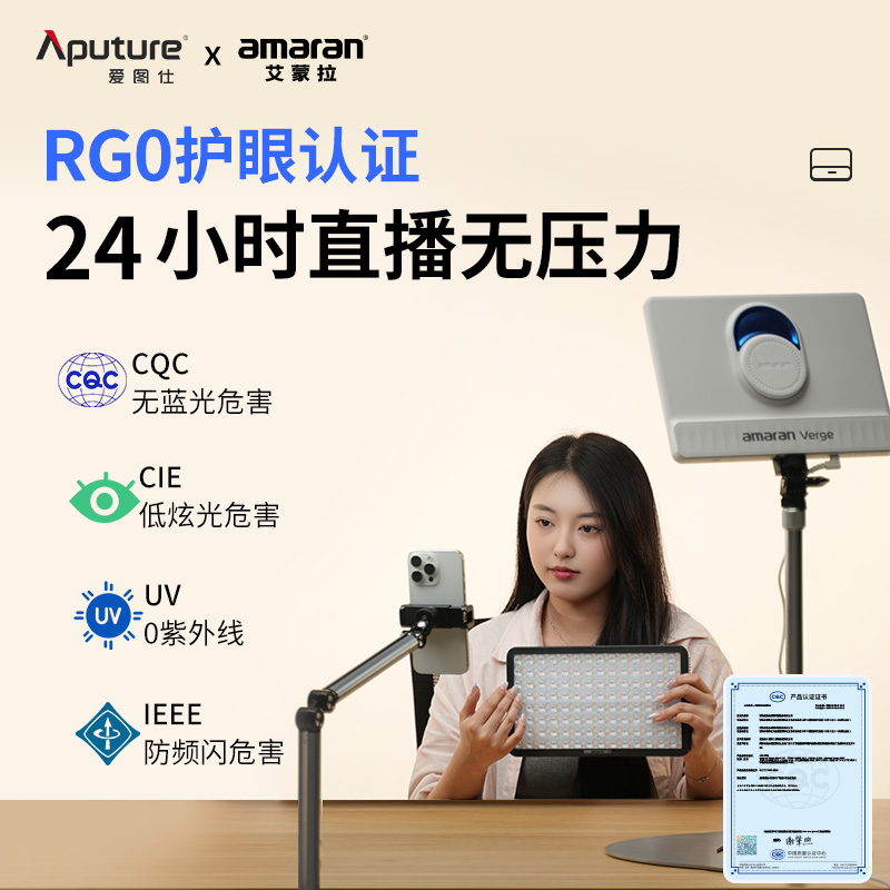 白月光护眼平板灯 amaran艾蒙拉Verge双色温侧发光美颜桌面补光灯 室内直播视频摄影补光灯 爱图仕 Aputure