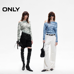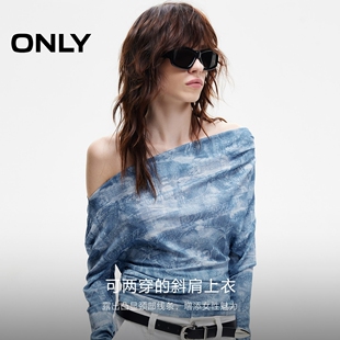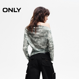 新款 满印满印长袖 个性 斜裁荡领数码 T恤女 优雅修身 ONLY2025秋季