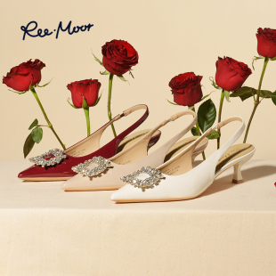 女气质尖头单鞋 reemoor2025新款 白色伴娘鞋 婚鞋 细跟高跟睿慕 法式