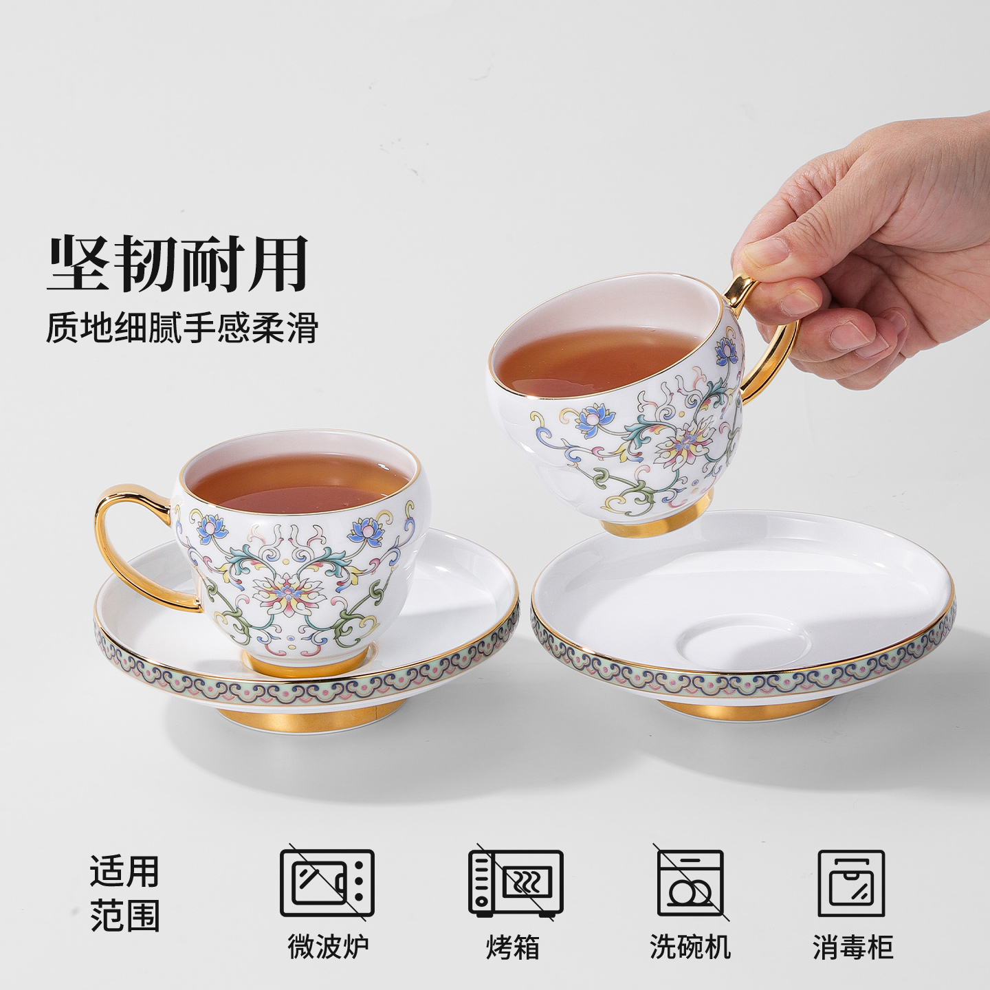 景德镇官方陶瓷中式 描金男女对杯碟家用复古情侣对杯龙珠阁高档