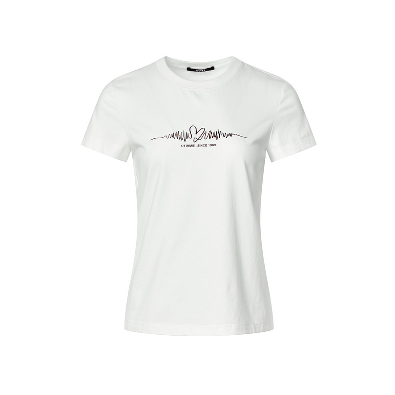 女装 TI尤缇2025夏季 百搭简约正肩短袖 白色亮闪棉质T恤 专柜新款