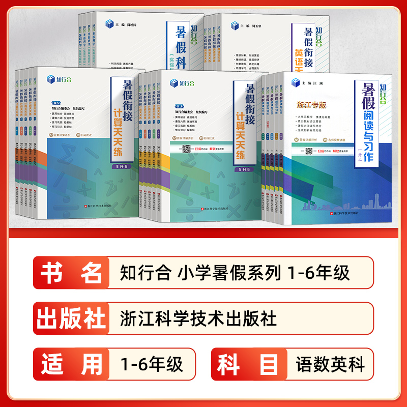 浙江专版 全套小学生暑假作业同步专项训练习册教材复习一本通 2025知行合暑假衔接阅读与习作计算天天练一二三四五六年级上册人教版
