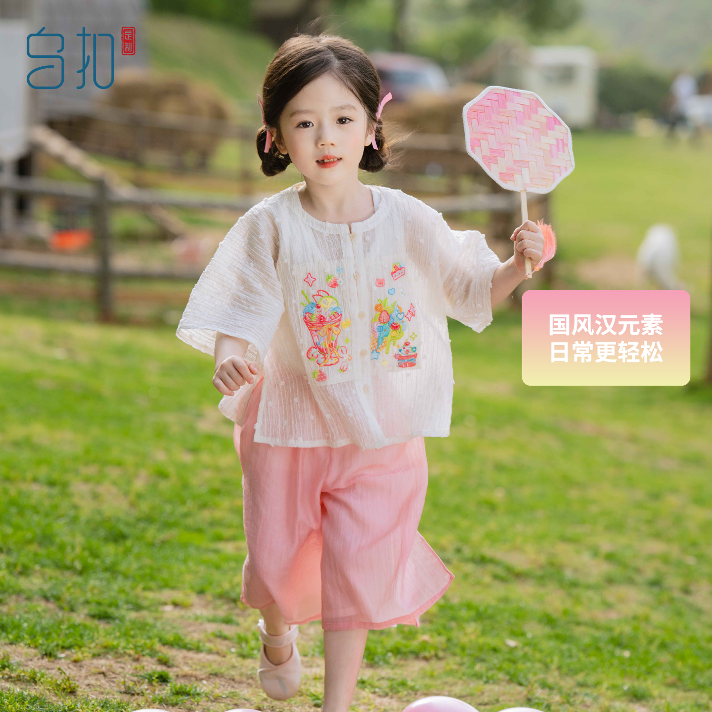 清甜夏日女童新中式 短袖 童装 薄款 国风儿童汉服改良明制 夏季 乌扣.
