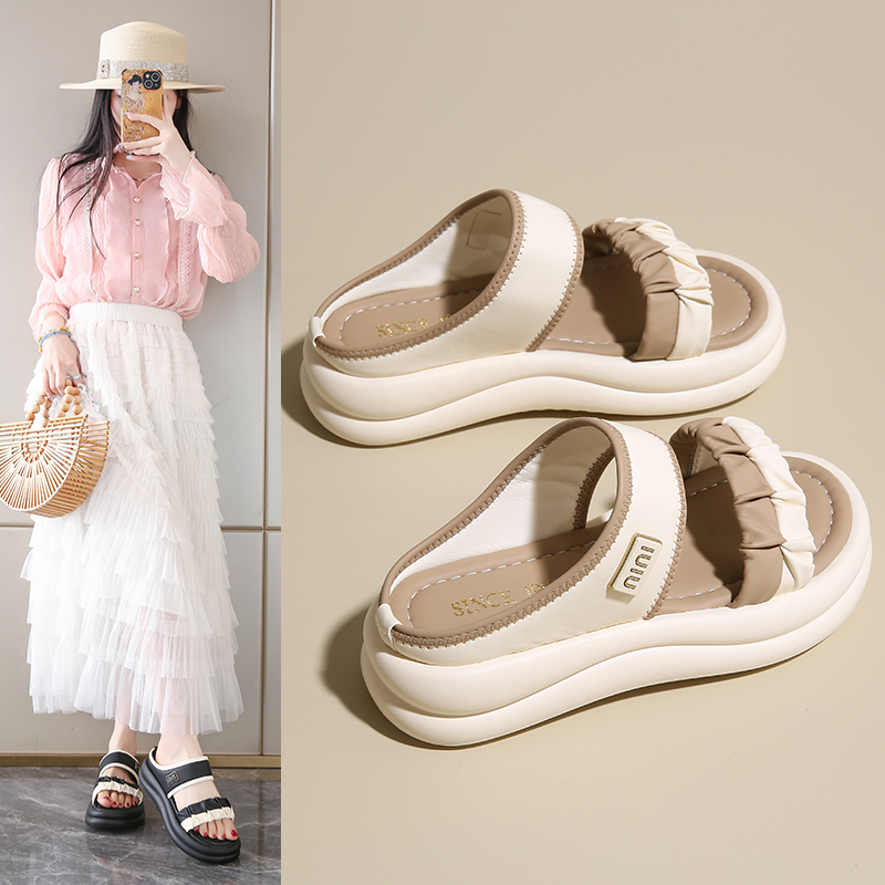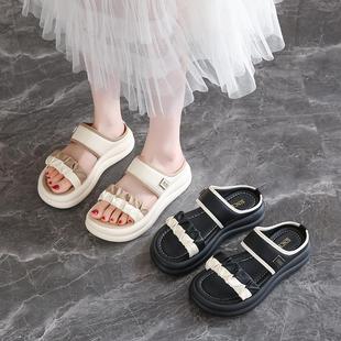 34海边沙滩凉鞋 外穿凉拖软底一字拖小码 女大童夏季 仙女风厚底拖鞋