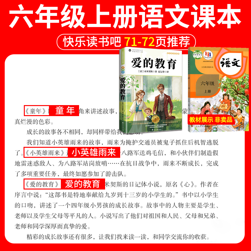 意大利亚米契斯著三四五六年级老师必读 原著完整版 课外书推荐 小学生阅读书籍文学经典 读物 爱 青少年版 教育六年级必读上册正版