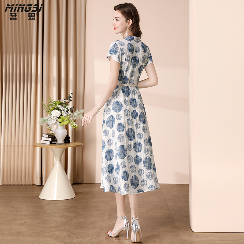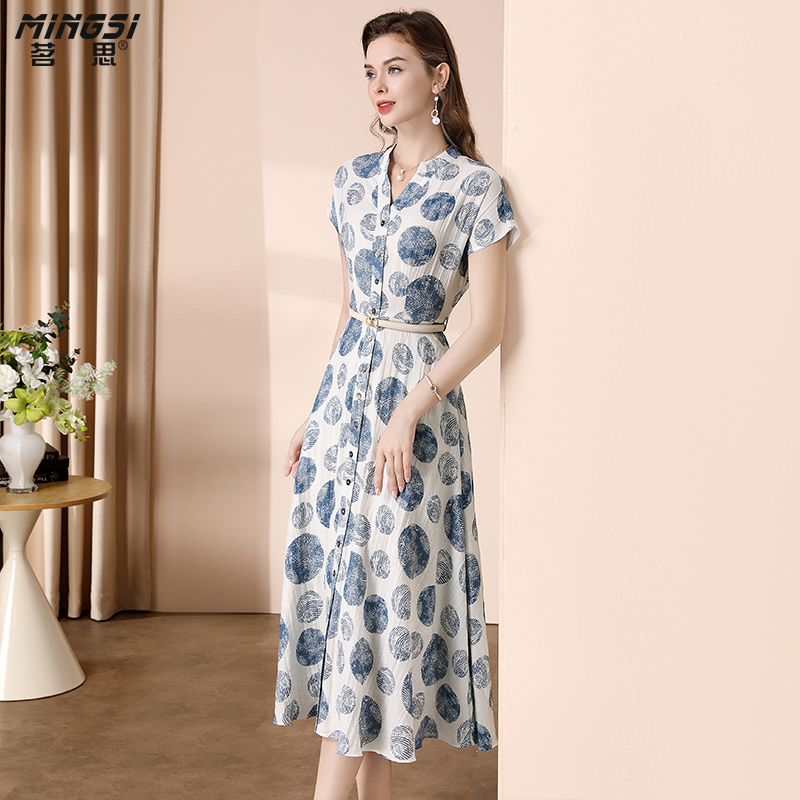 收腰显瘦V领印花度假裙子 新款 茗思气质法式 减龄连衣裙女2025夏季