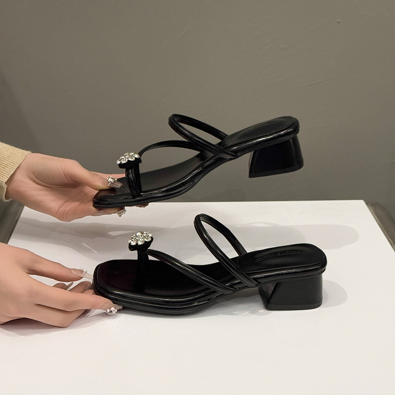 配裙子凉拖鞋 法式 绝美时尚 女夏外穿2025新款 粗跟水钻套趾高跟凉鞋