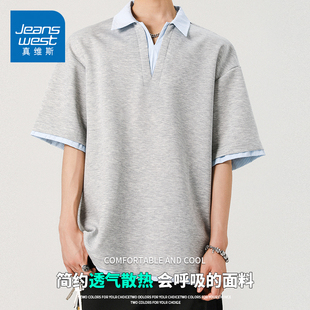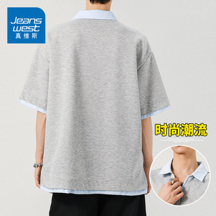 宽松打底衫 KZH真维斯港风短袖 新款 男夏季 假两件V领休闲上衣 Polo衫