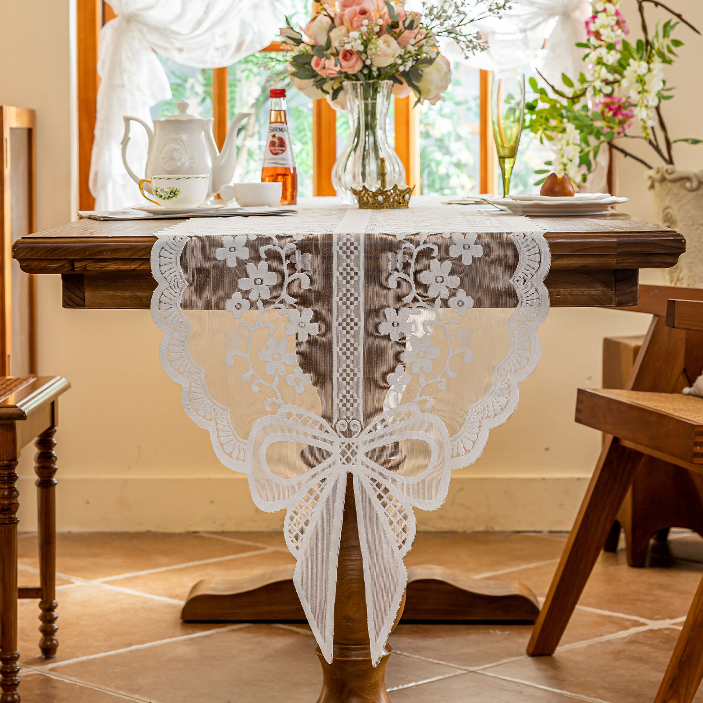 白色蕾丝桌旗长条法式 柜餐边柜盖巾 桌布氛围感北欧风茶几电视柜鞋