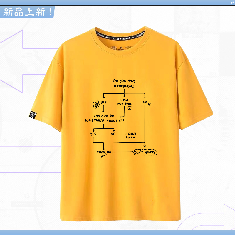 上衣LN 男女个性 不要担心焦虑创意短袖 T恤小众文字简约夏纯棉半袖