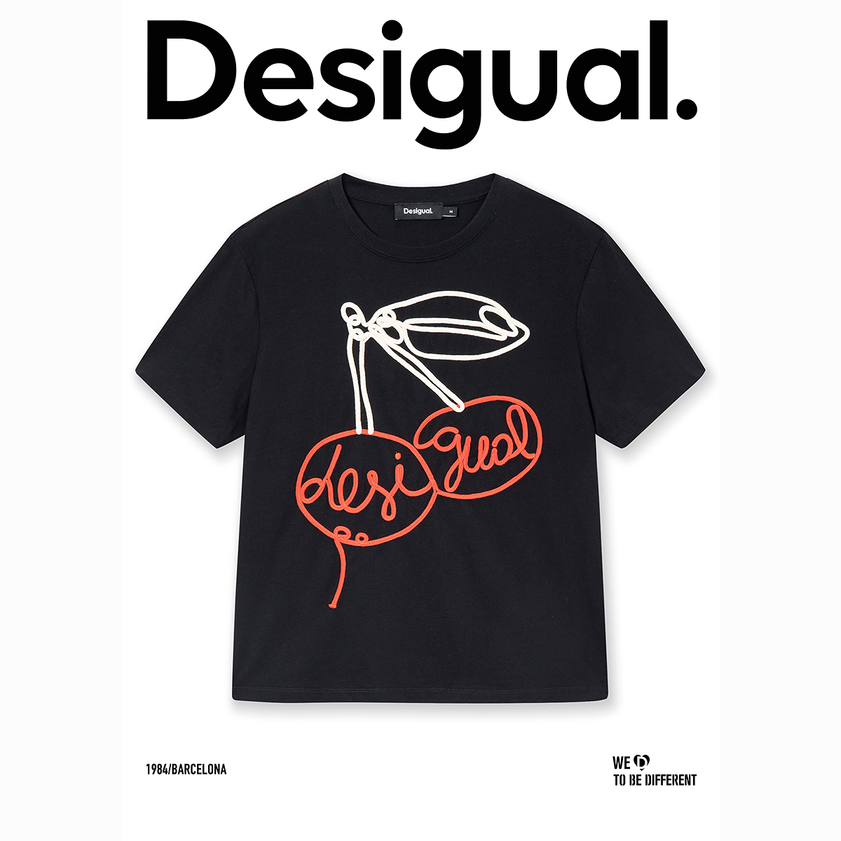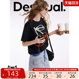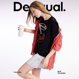 Desigual拼色盘带绣圆领短袖 女士T恤