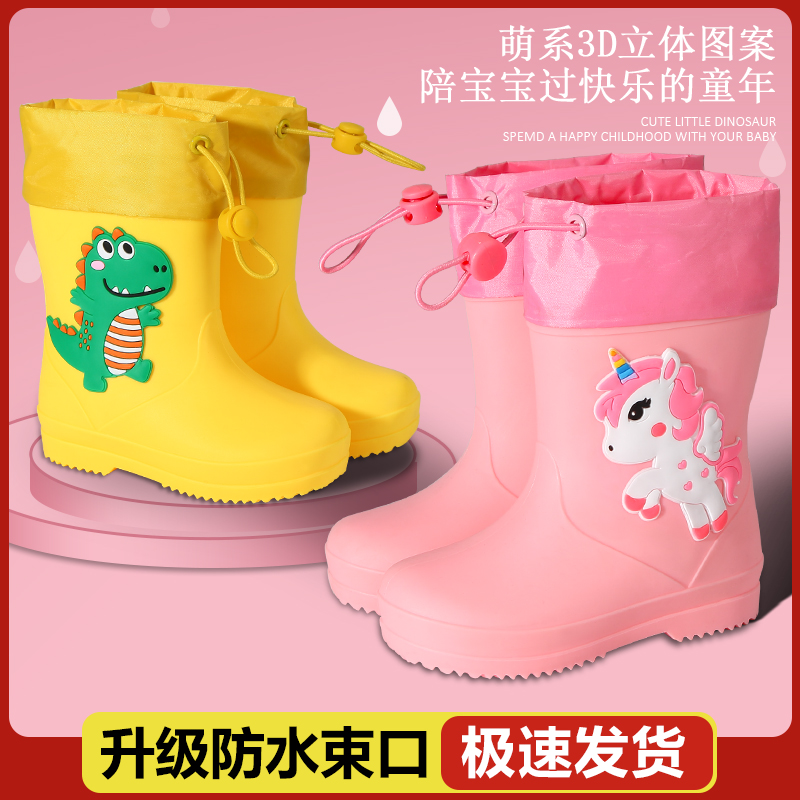 儿童雨鞋 男童卡通女童防水宝宝轻便中小童幼儿学生防滑加绒雨鞋