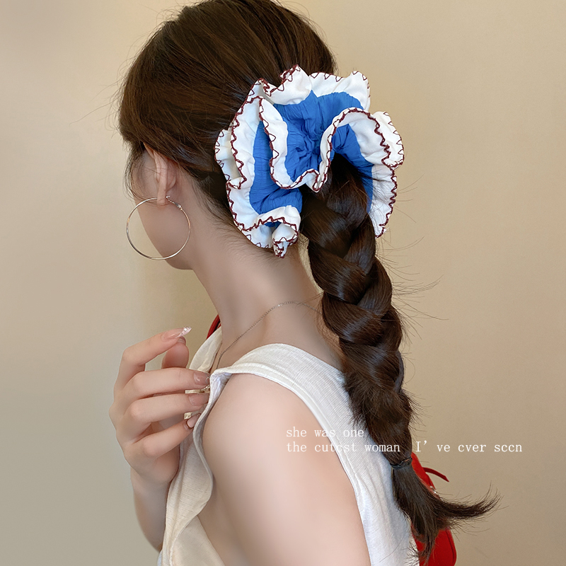 复古蓝调双层蕾丝大肠圈发绳法式 少女褶皱芭蕾风发圈高级感发饰品