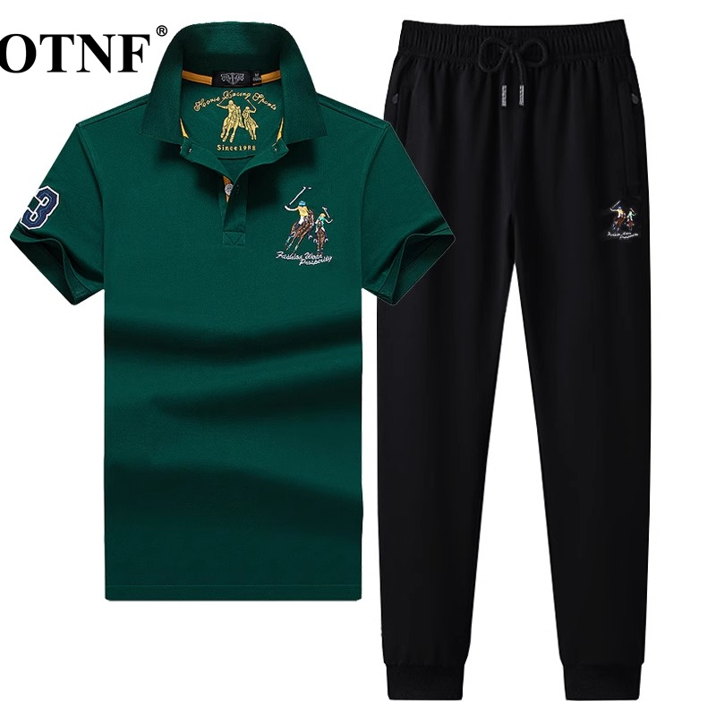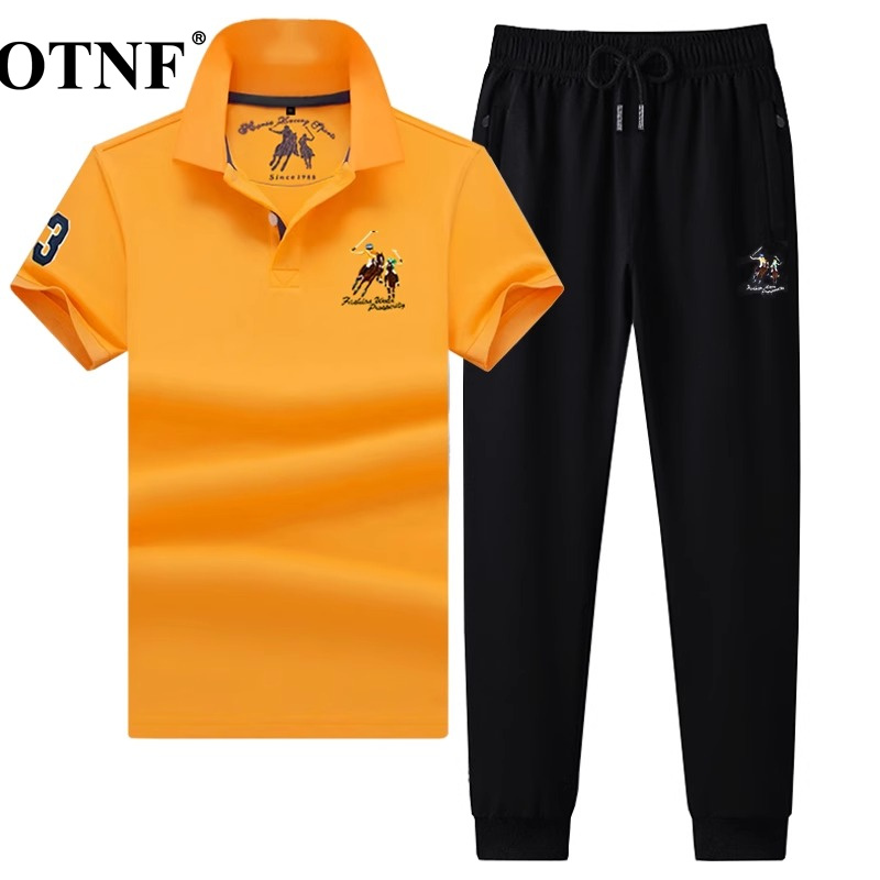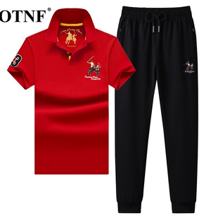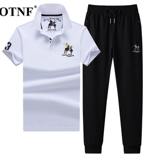 长裤 高端休闲运动套装 纯棉长袖 新款 休闲T恤纯色两件套 男2025夏季