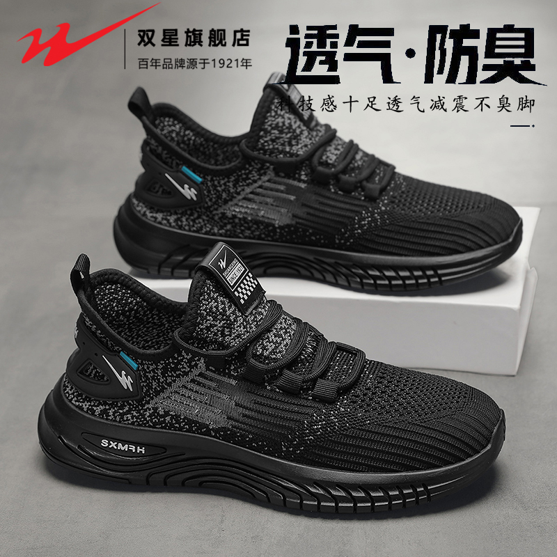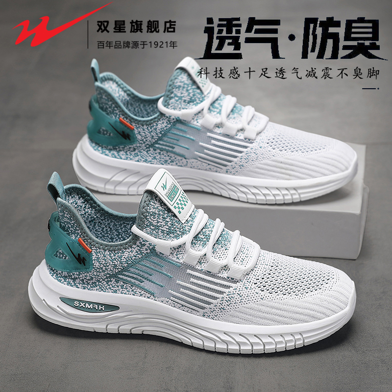 2025新款 运动百搭休闲椰子潮鞋 秋季 网鞋 透气网面薄款 双星飞织男鞋