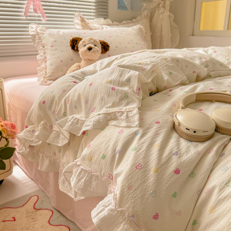 可爱韩系小清新软糯四件套仙美花边亲肤被套学生宿舍三件套床品笠