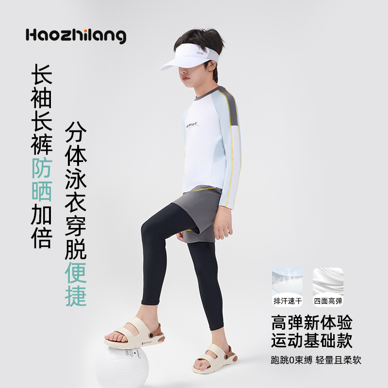 防晒游泳衣柔软舒适分体游泳装 长裤 长袖 儿童中童男童泳衣2025新款