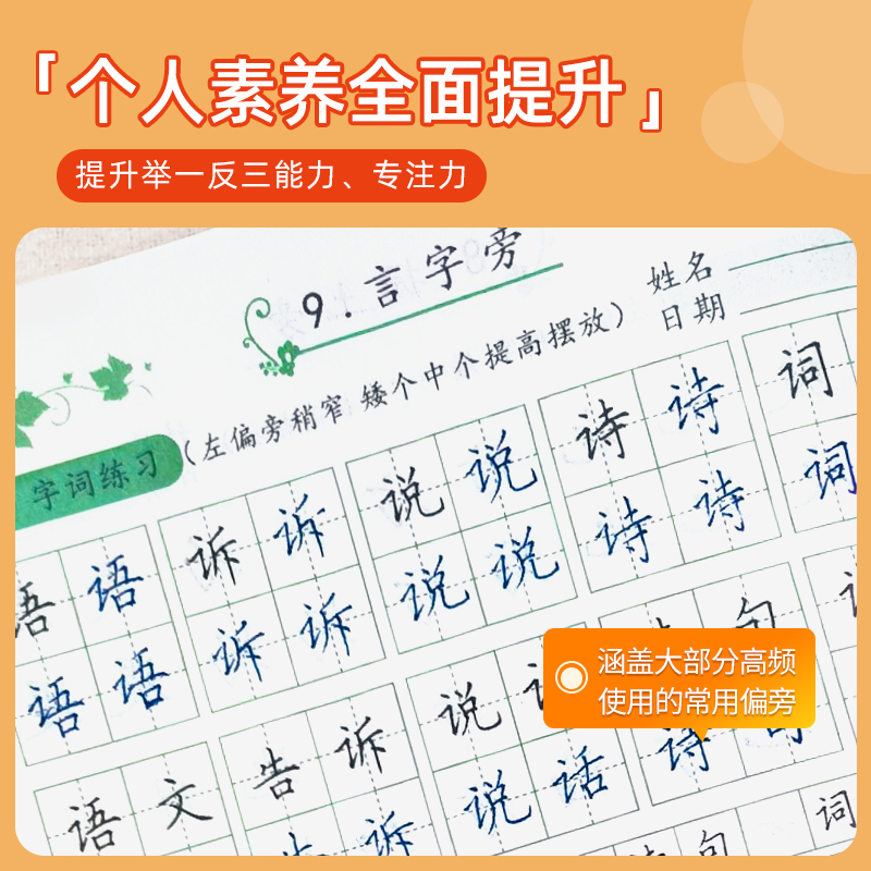 赵汝飞练字小学语文基础提高卷面分练字帖小学生人教版 书写基础训练正楷书法技巧练习偏旁部首词语句子写字本田格独体字练习硬笔