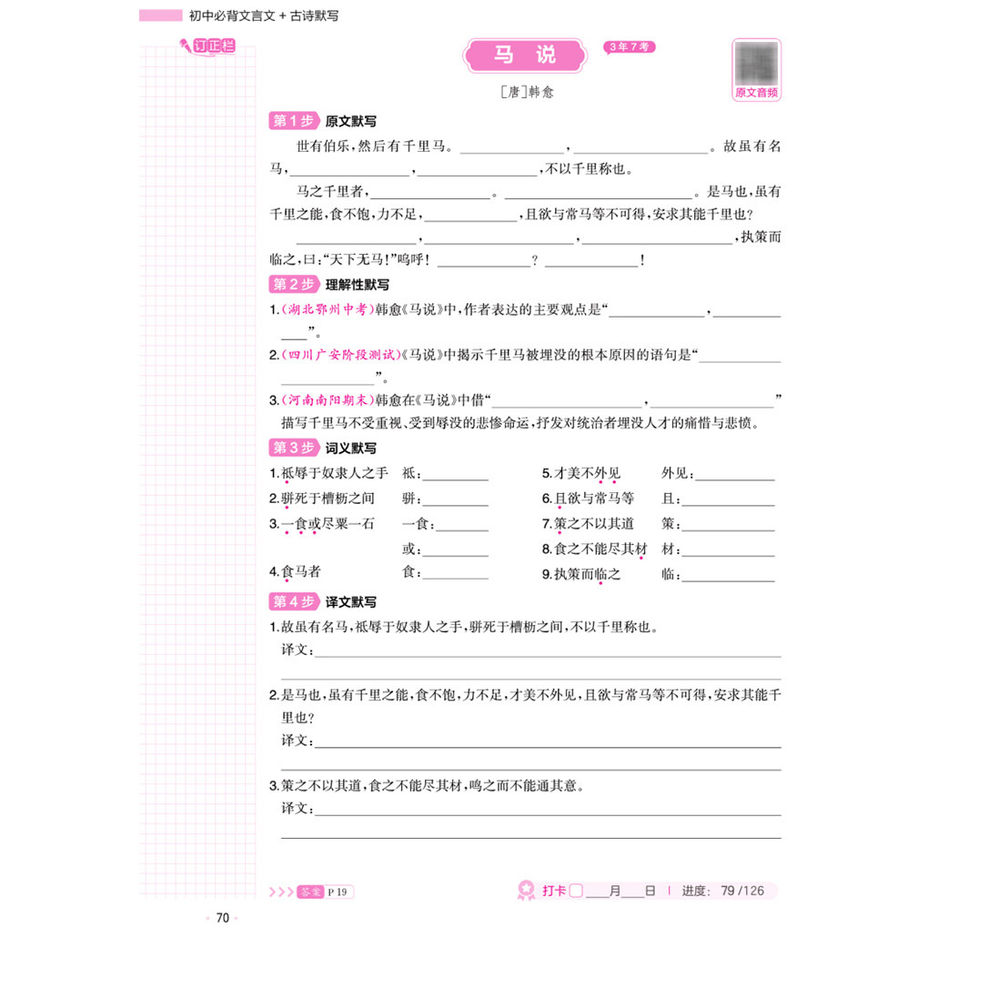 一本初中必背文言文古诗文默写七八九年级上下册课内外古诗文考点默写考频标注音频同步文言文和古诗词练习册中学中考教辅书
