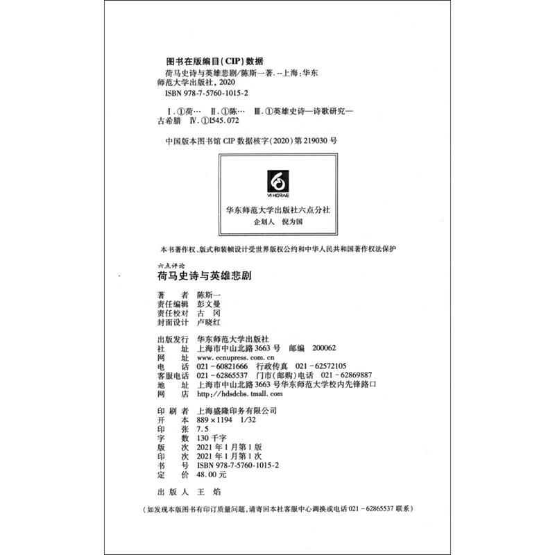 陈斯一 六点评论 华东师范大学出版 社 书籍 当当网 正版 荷马史诗与英雄悲剧