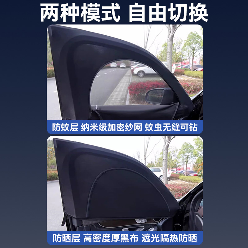 车窗防蚊网汽车防蚊虫纱窗帘遮阳帘车载防晒网罩车用挡蚊帐隐私帘