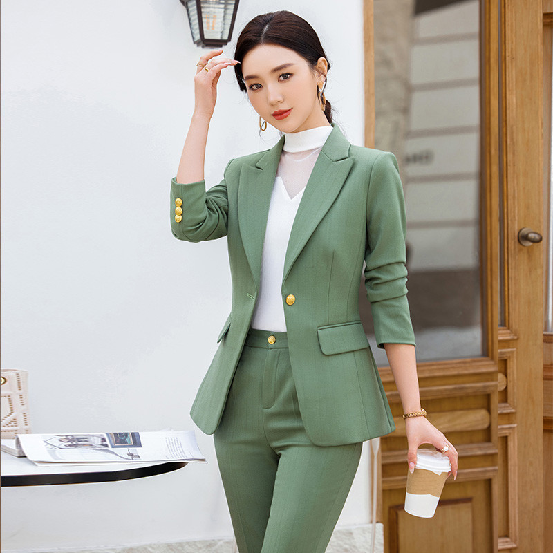 高级感气质女神范职业正装 女春秋新款 休闲 套装 速发高品质绿色西装