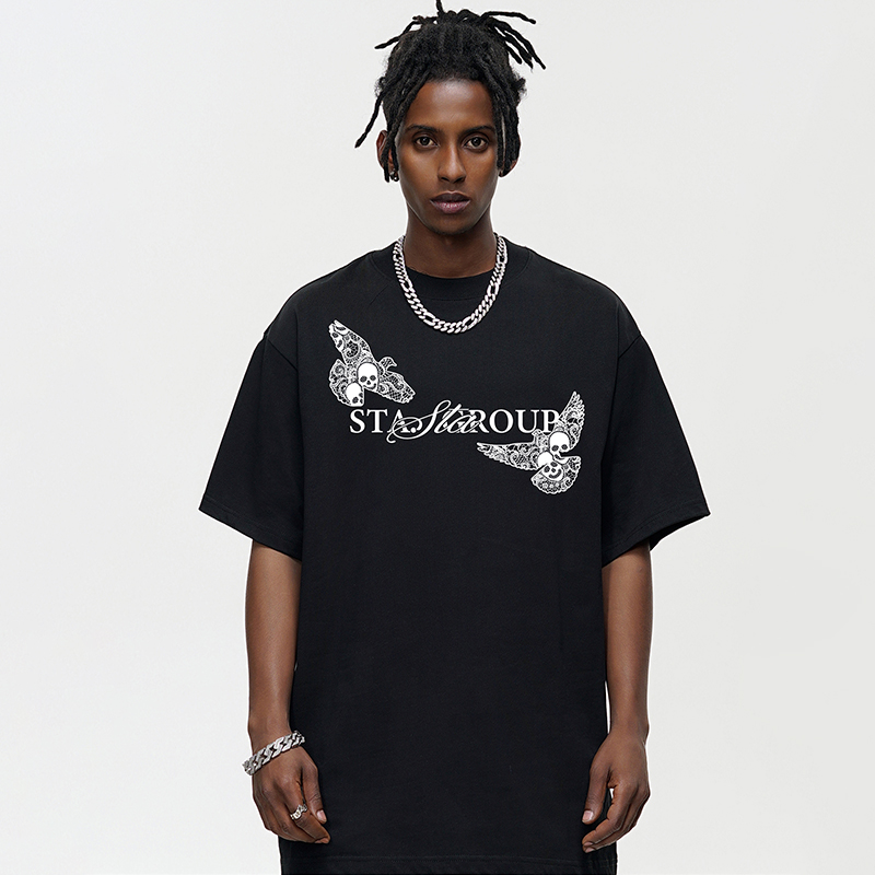 休闲复古宽松百搭纯棉短袖 STA美式 情侣款 新款 T恤 字母印花男女夏季