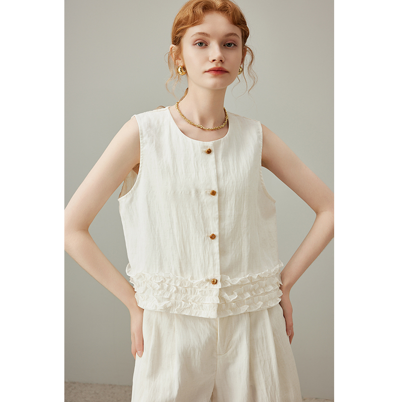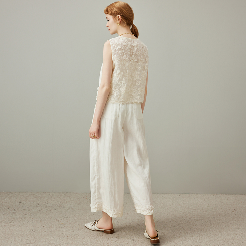 女2025年夏季 套装 新款 无袖 背心两件套 dfvc韩版 衬衫 蕾丝马甲阔腿裤
