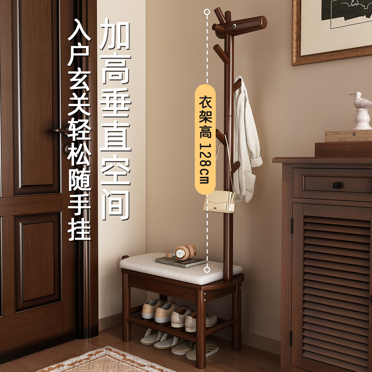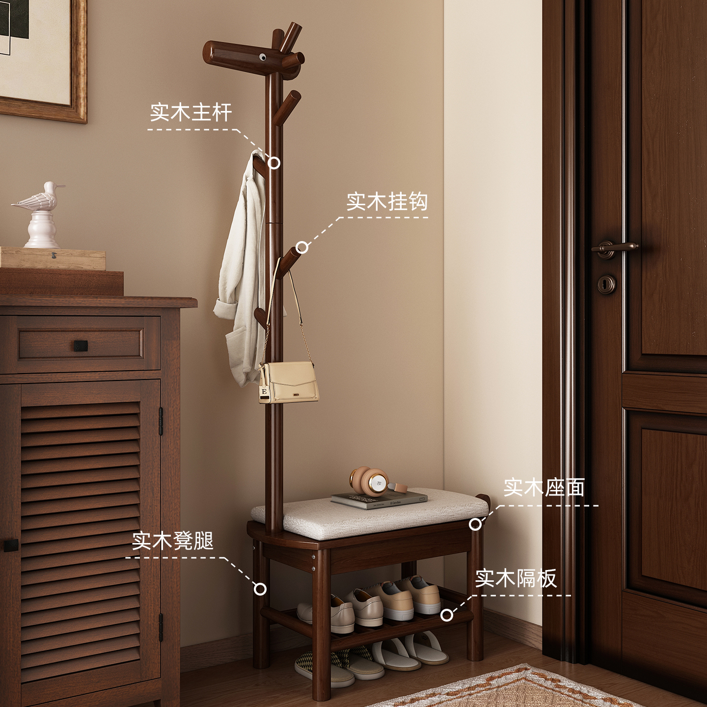 柜坐凳一体挂衣架 凳中古风鞋 实木换鞋 凳家用门口入户玄关进门穿鞋