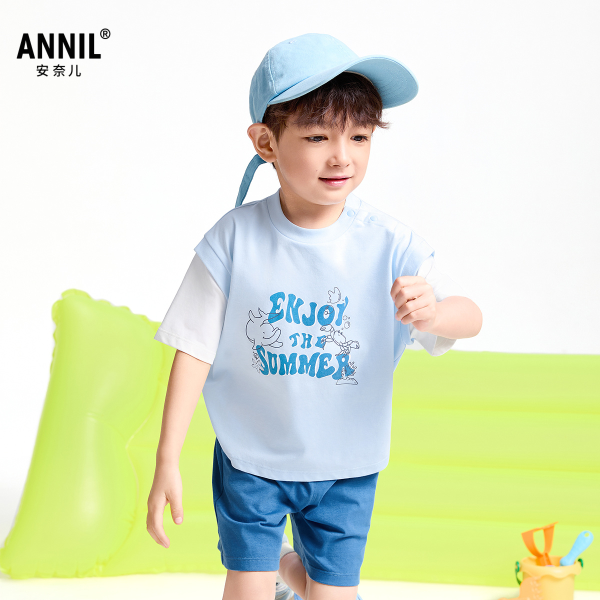 商场同款 2025夏记忆棉凉感短裤 安奈儿童装 套装 T恤 男小童短袖
