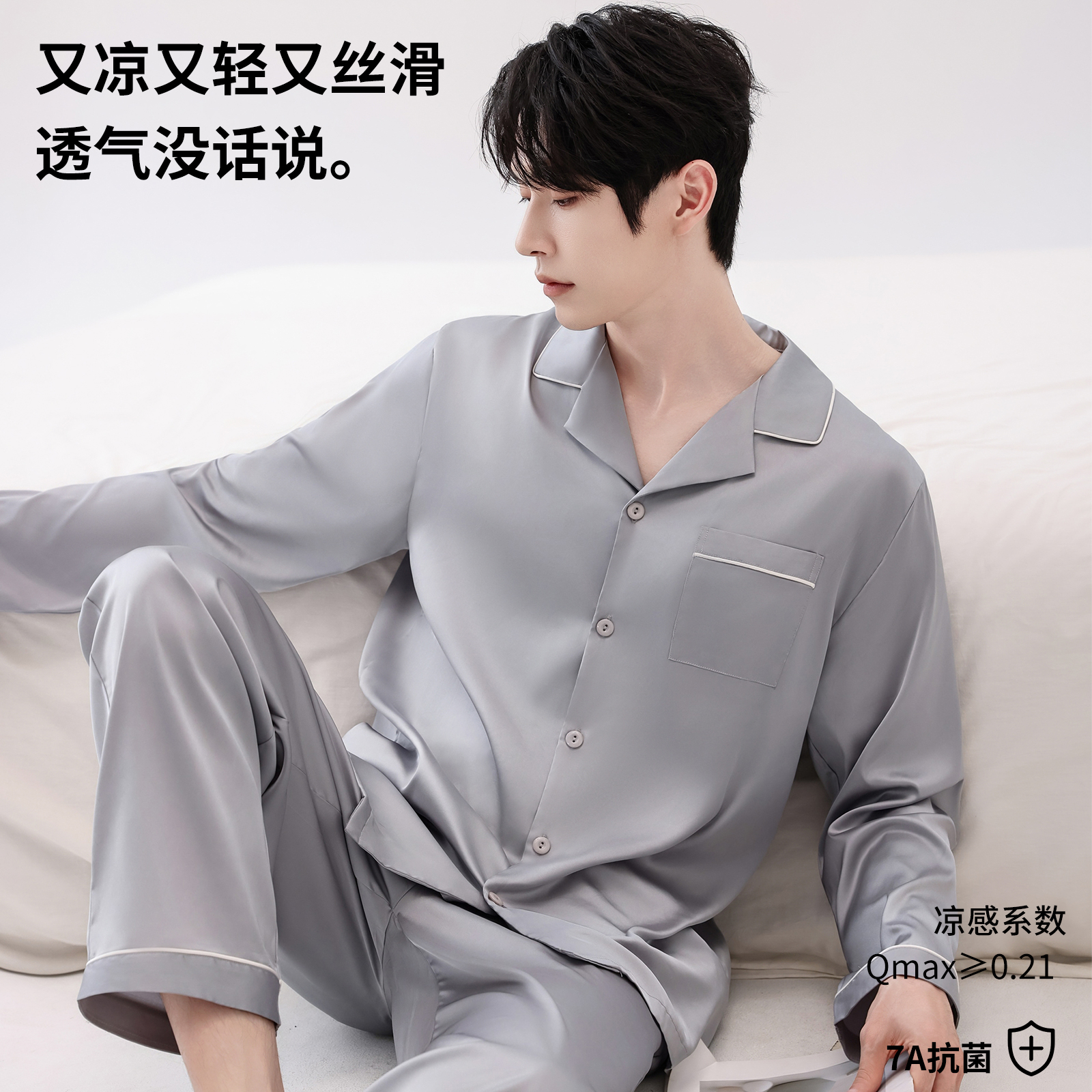 夏款 短袖 丝绸家居服2025新款 睡衣夏季 春秋款 冰丝男款 薄款 男士 套装