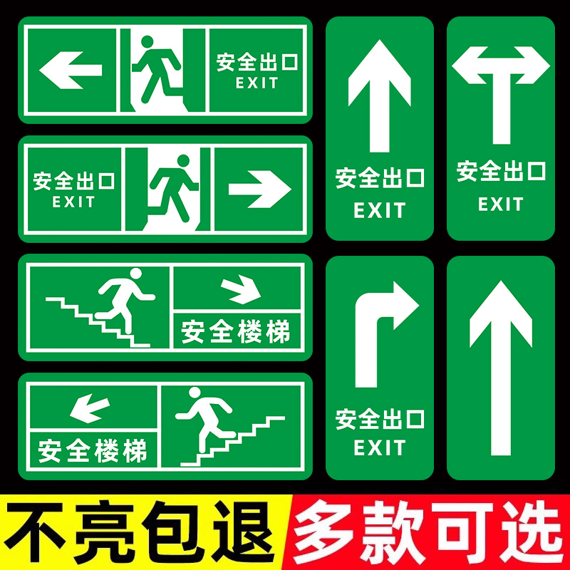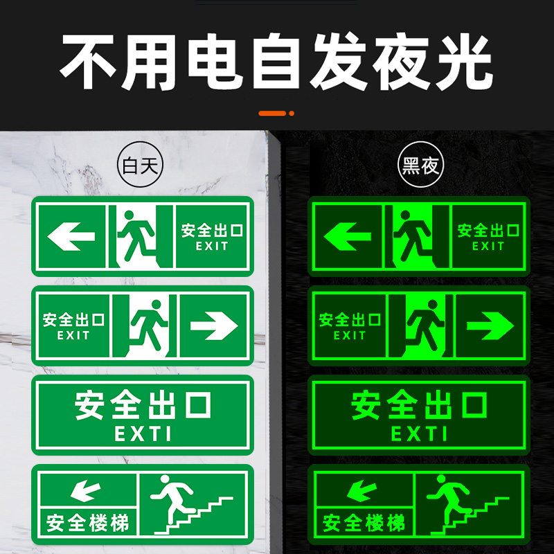 安全出口指示牌夜光楼道疏散指示标志墙贴警示牌导向牌紧急出口安全逃生门标识牌消防通道应急出口标识牌定制