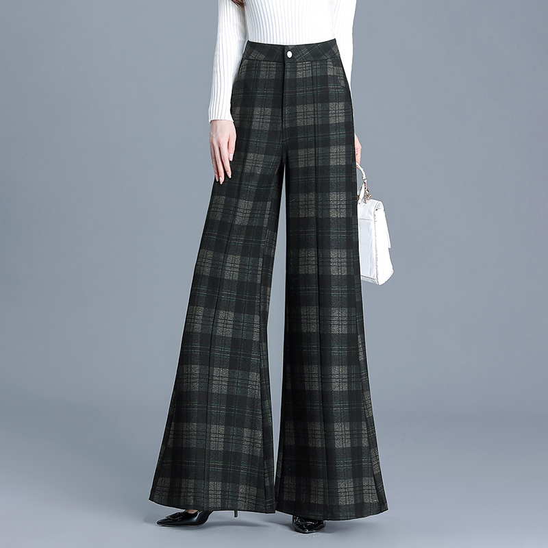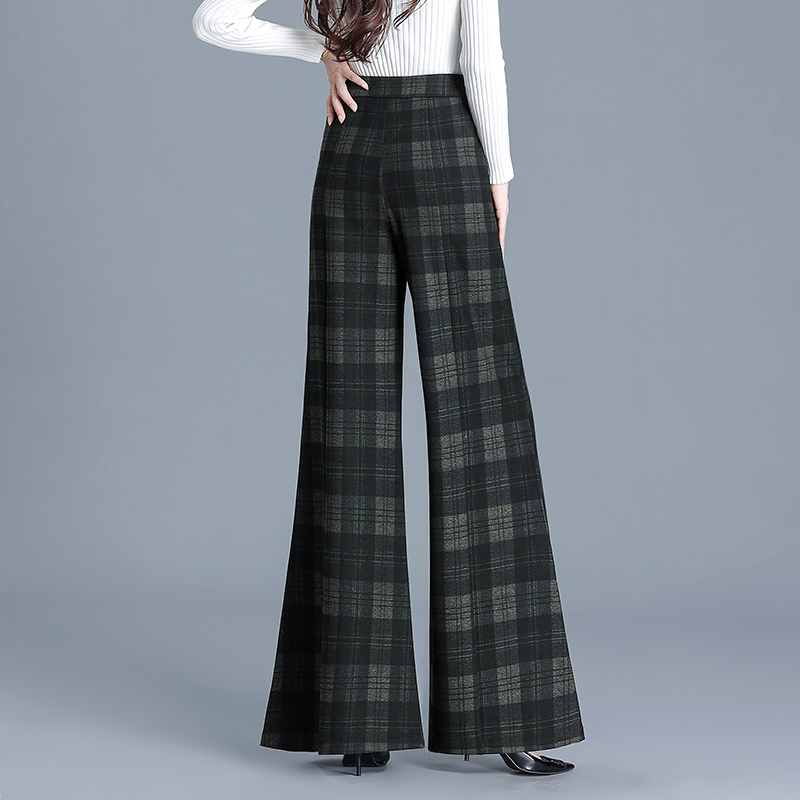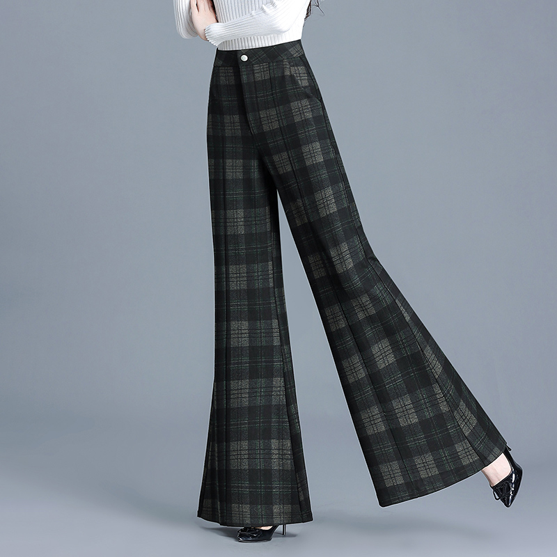 格子裤 毛呢喇叭裤 垂坠感微喇裤 秋冬高腰显瘦宽松大脚裤 女2025新款