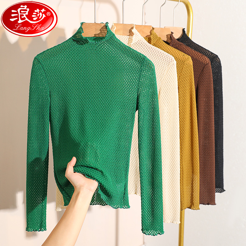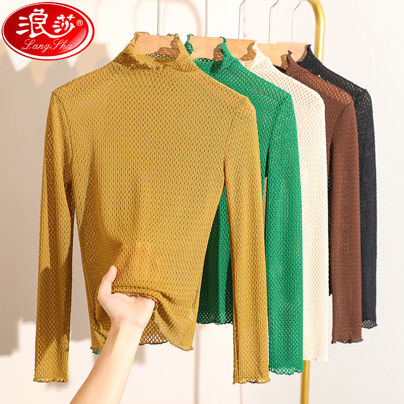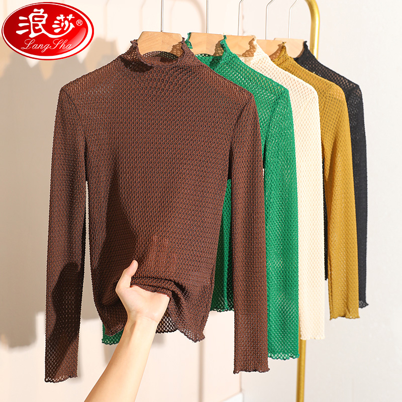 女纯色2025春季 上衣小衫 新款 长袖 内搭女装 浪莎半高领蕾丝打底衫