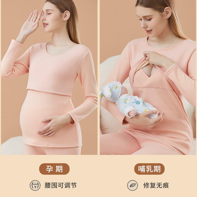 月子服 秋衣秋冬秋衣秋裤 孕妇加厚保暖衣套装 加绒哺乳上衣喂奶长袖