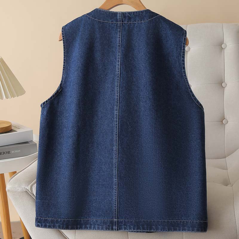 复古牛仔背心马甲大码 洋气减龄遮肚子外套 胖mm双口袋外穿马夹无袖
